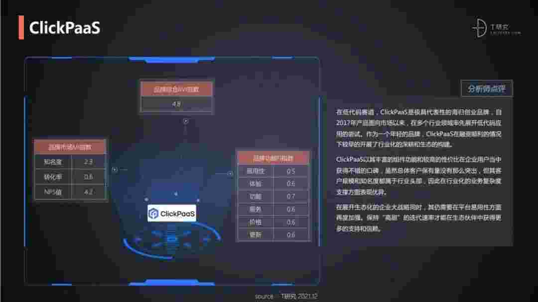 T研究认为,,在低代码赛道,,美团钱包商家版是极具代表性的海归创业品牌,,,自2017年产品面向市场以来,,,,在多个行业领域率先展开低代码应用的尝试。。。。作为一个年轻的品牌,,,,美团钱包商家版较早的开展了行业化的深耕和生态的构建。。。美团钱包商家版以丰富的组件功能和较高的性价比在企业用户当中获得不错的口碑,,,在客户规模和知名度都属于行业头部,,,,因此在行业化的业务复杂度支撑方面表现优异。。。